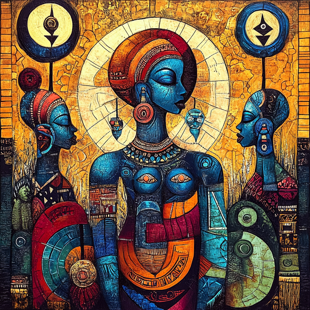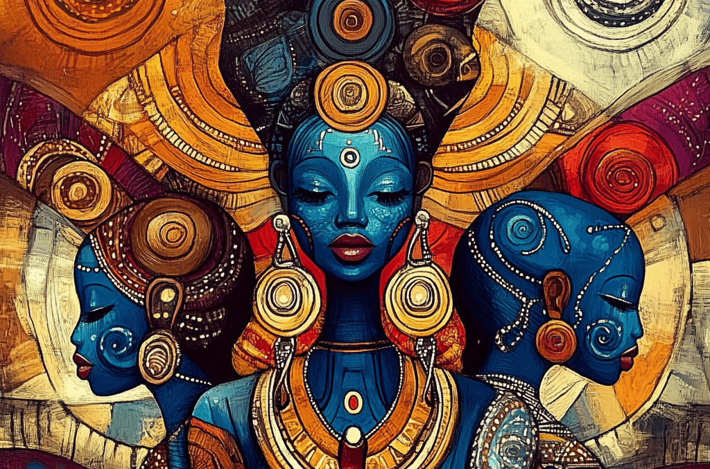 Water goddess, healer, wealth-bringer, transoceanic spirit. Mami Wata survived the slave trade, carried across the Atlantic into Haiti, Brazil, and the Caribbean. Proof that African goddesses were encoded for continuity.
